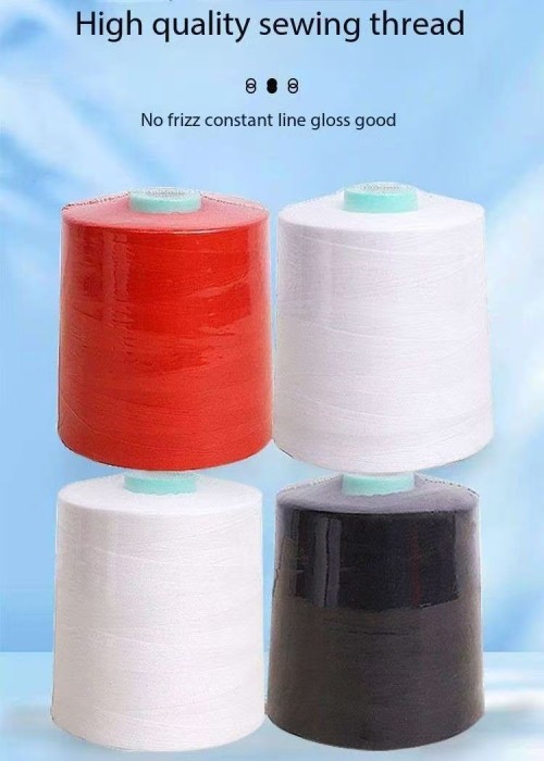 This high-quality polyester sewing thread is available in raw white and black, offering strength and durability for various applications. Ideal for clothing, sheets, luggage, and shoes, its a versatile choice for manufacturers and textile professionals.